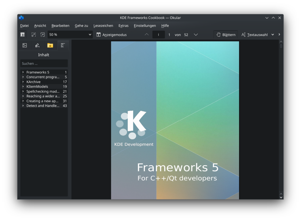 Öffnen PDF, Dejavu, PS, DVI und mehr, kommentiere Dokumente, fülle Formulare aus und lese sogar E-Books mit Okular, dem universellen Dokumentbetrachter.